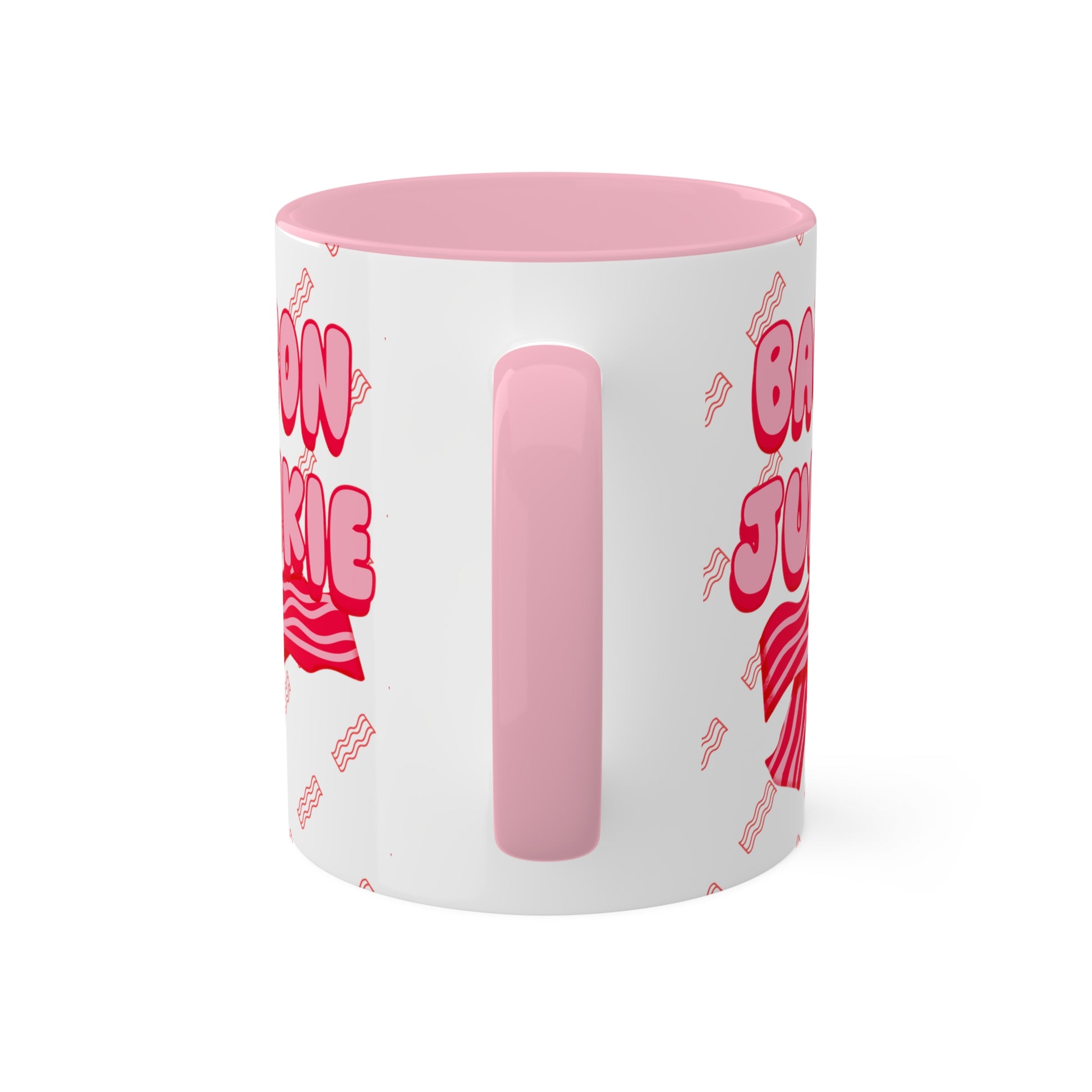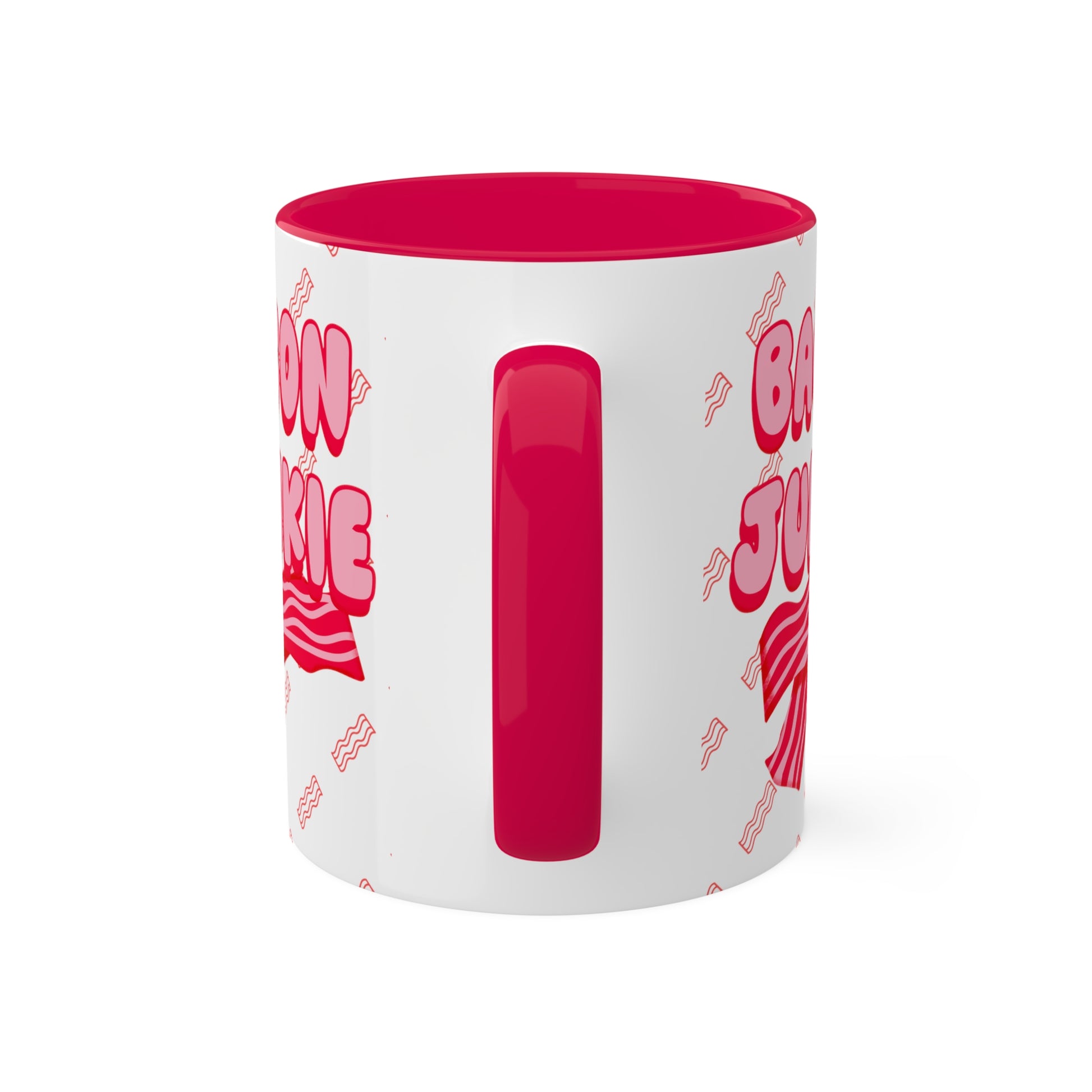 Fuel your bacon obsession with our Bacon Junkie Coffee Mug! This hilarious cup is a must-have for bacon enthusiasts, adding a dash of breakfast humor to your daily routine. Crafted for laughs and uniqueness, it's the perfect funny gift and a standout addition to your kitchenware. Celebrate your love for crispy delights with this Bacon Lover Gift that combines humor and functionality. Embrace the sizzle of bacon every morning with our Bacon Junkie Coffee Mug – because your coffee breaks should be as amusing as they are delicious! .: Material: 100% glossy ceramic .: Choose between 4 different accent colors .: One size: 11oz (0.33l) .: Easy-grip C-shaped handle