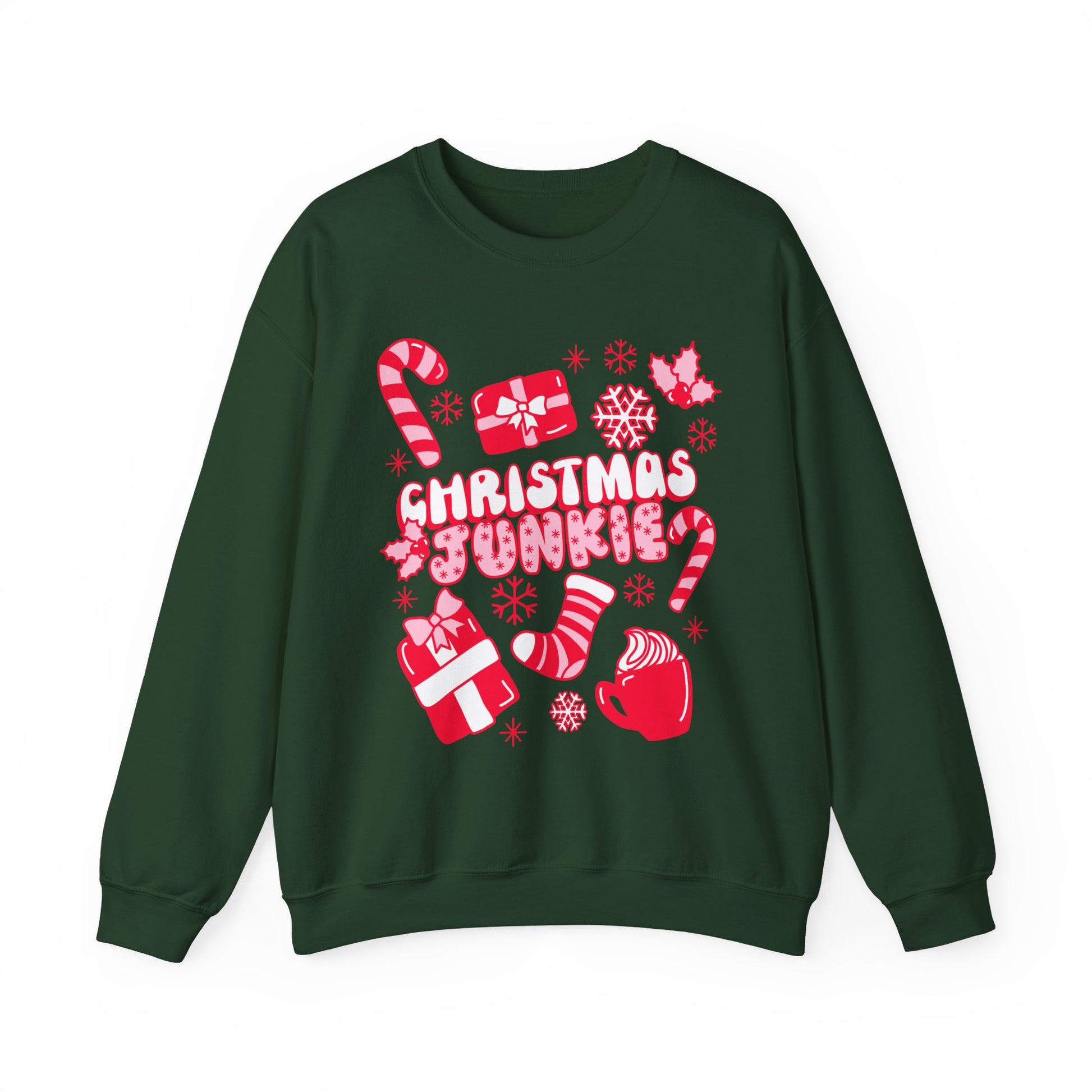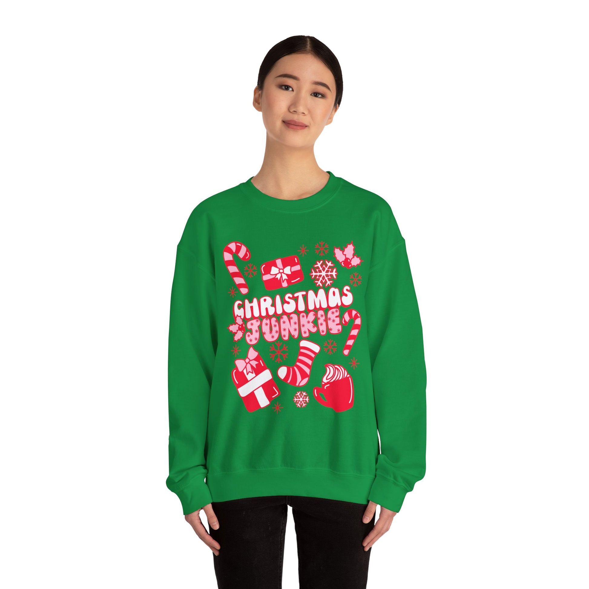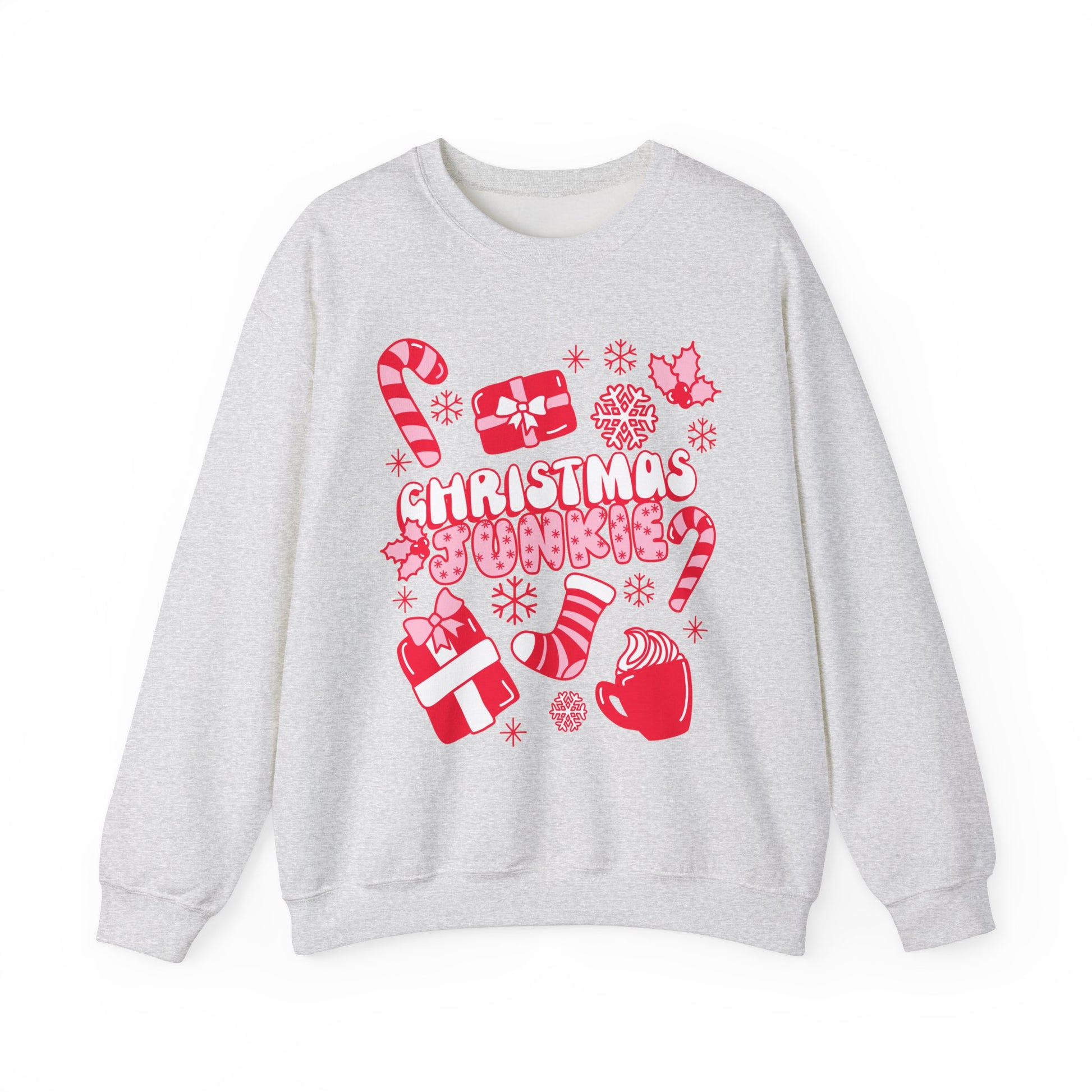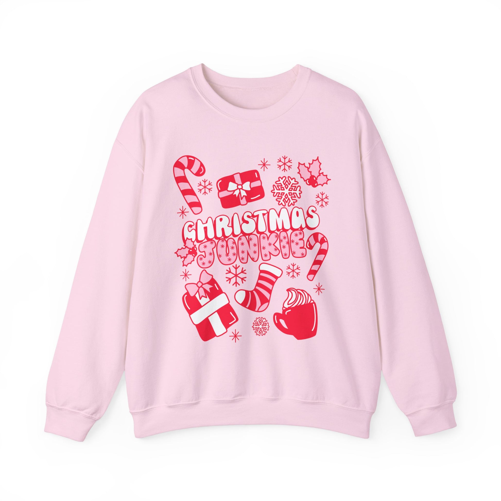Christmas Junkie Women's Sweatshirt | Festive Holiday Apparel for Women | Christmas Lover Pullover | Pink Christmas | Holiday Party Sweater