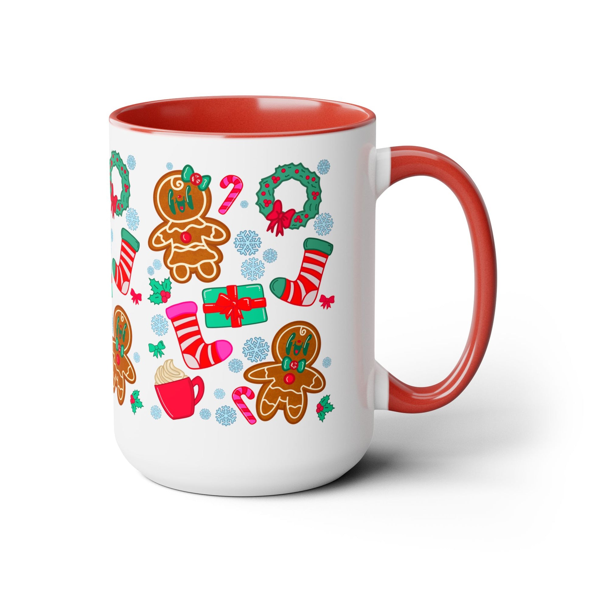 Christmas Pattern Coffee Mug | Festive Holiday Drinkware for Winter Season | Unique Xmas Gift Idea | Ceramic Holiday Cup | Gingerbread Mug
