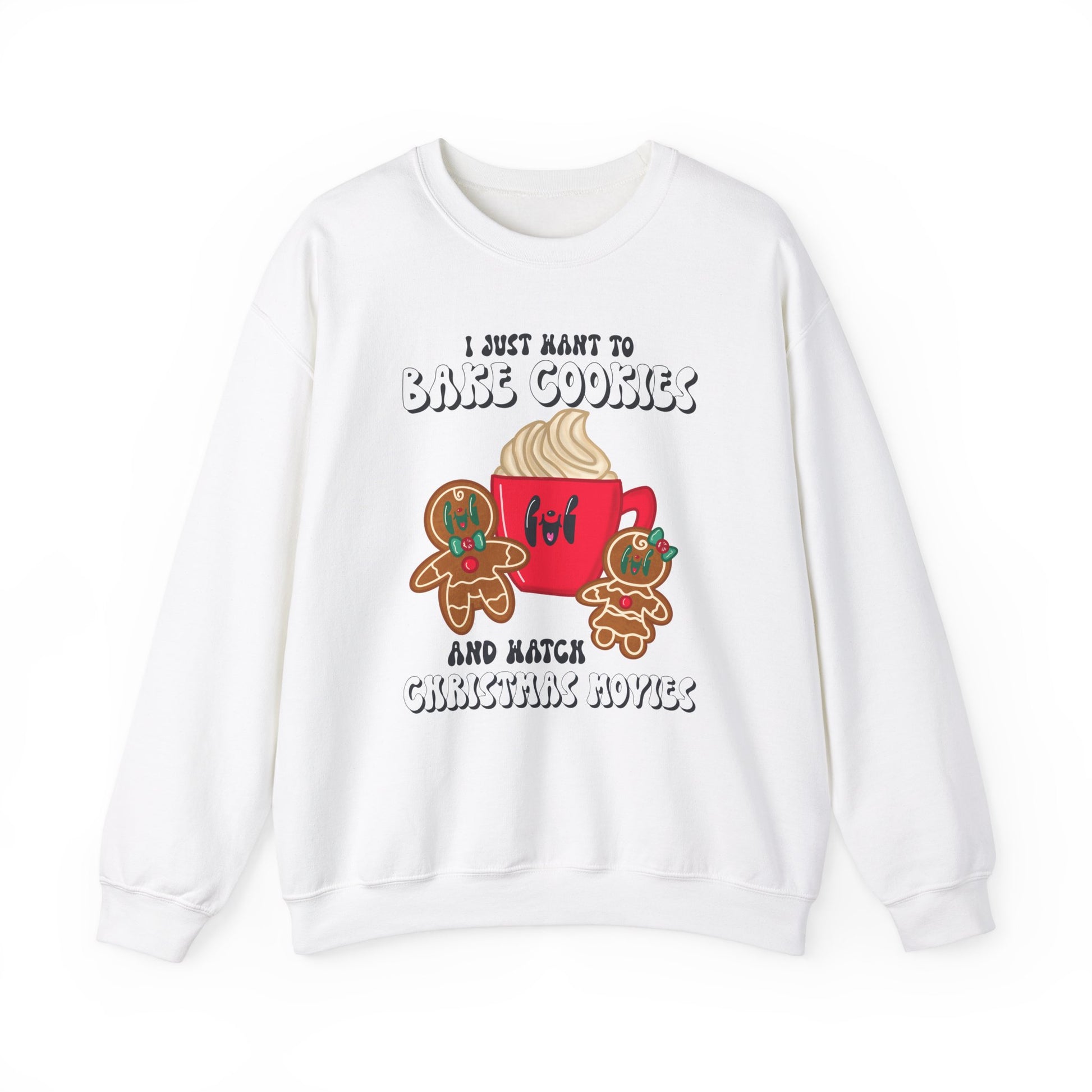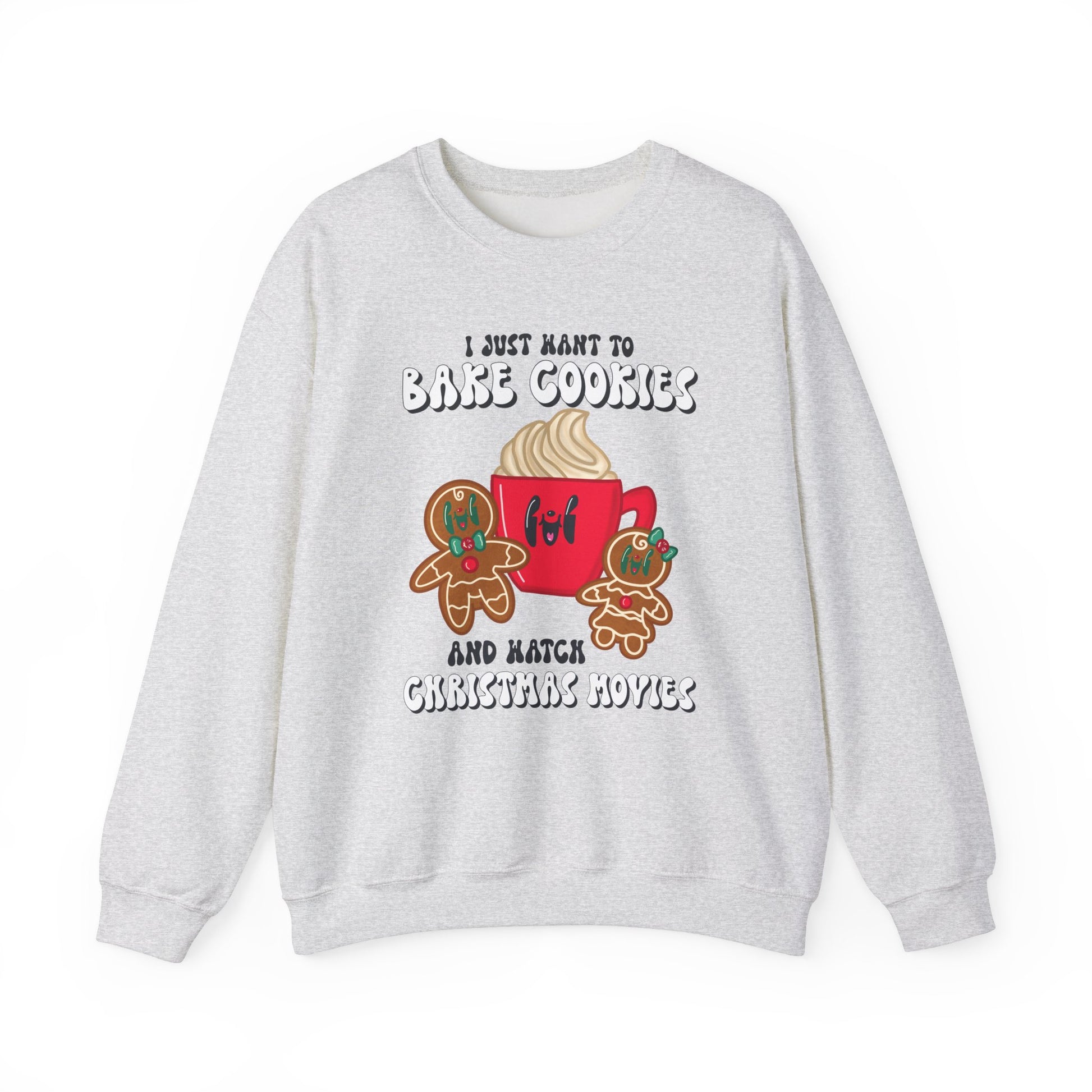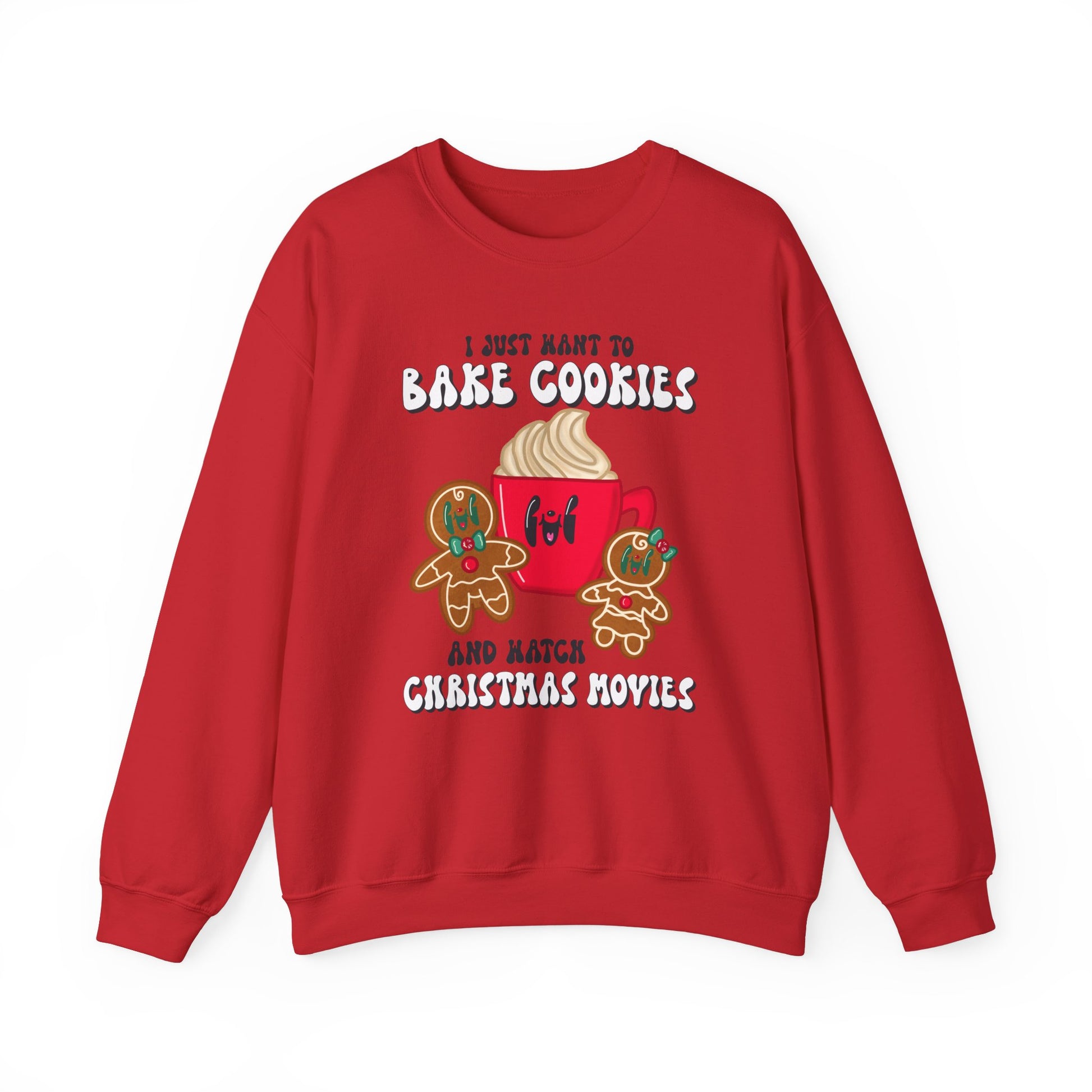 Cozy Christmas Movie Sweatshirt | Bake Cookies & Watch Movies Unisex Crewneck Sweatshirt | Gingerbead Pullover | Christmas Party Sweater