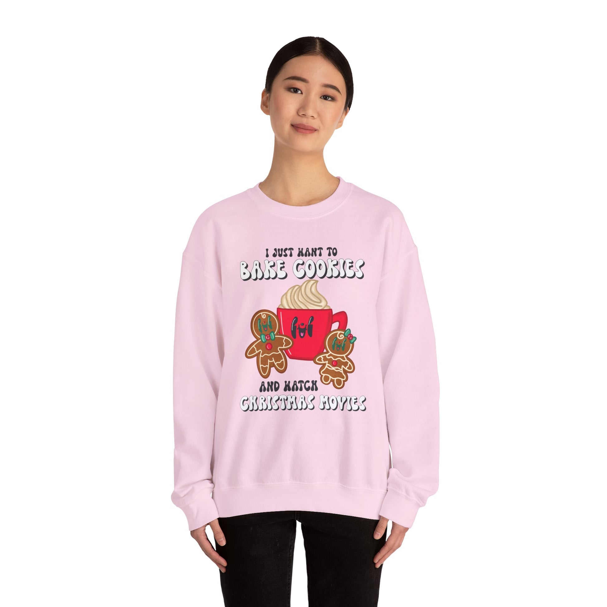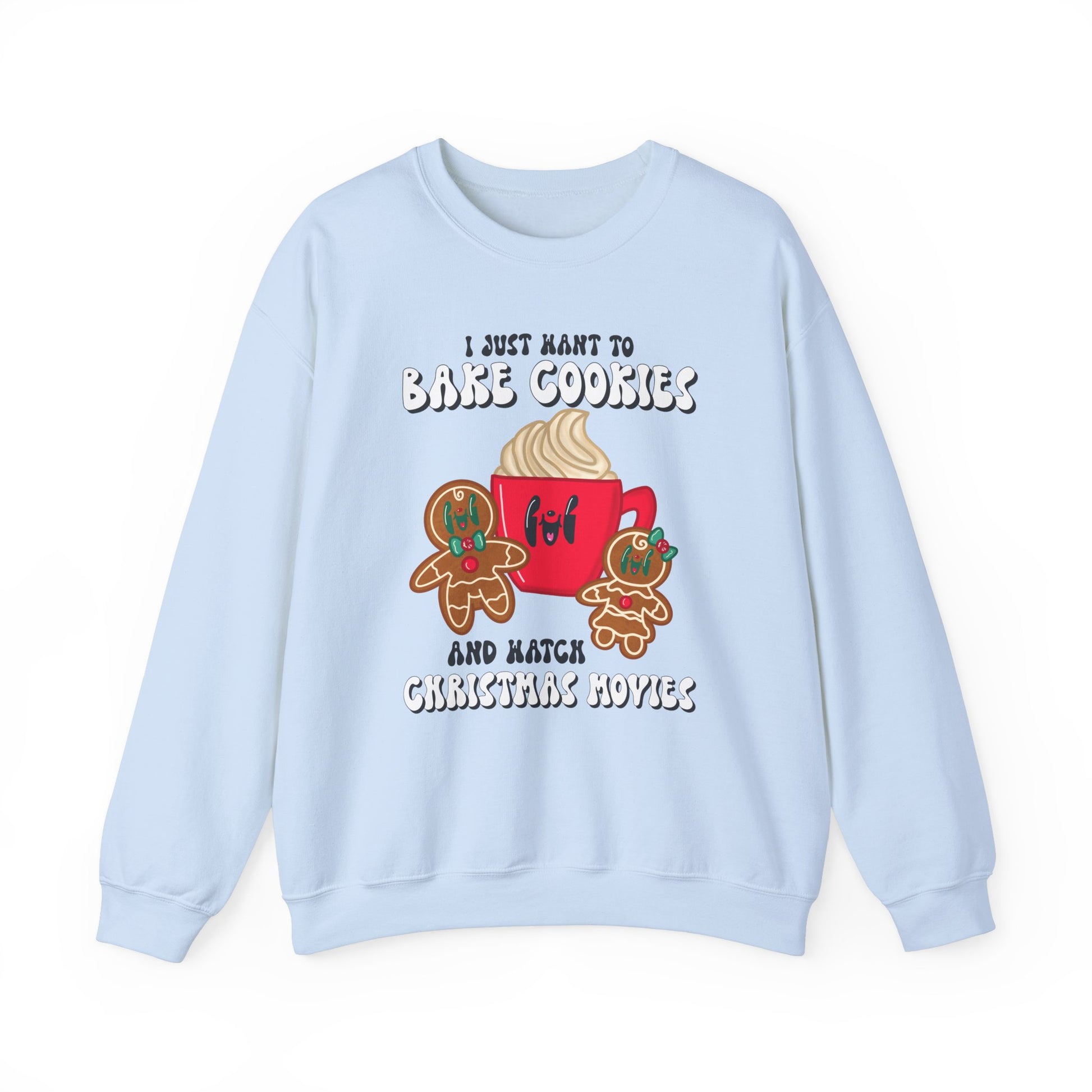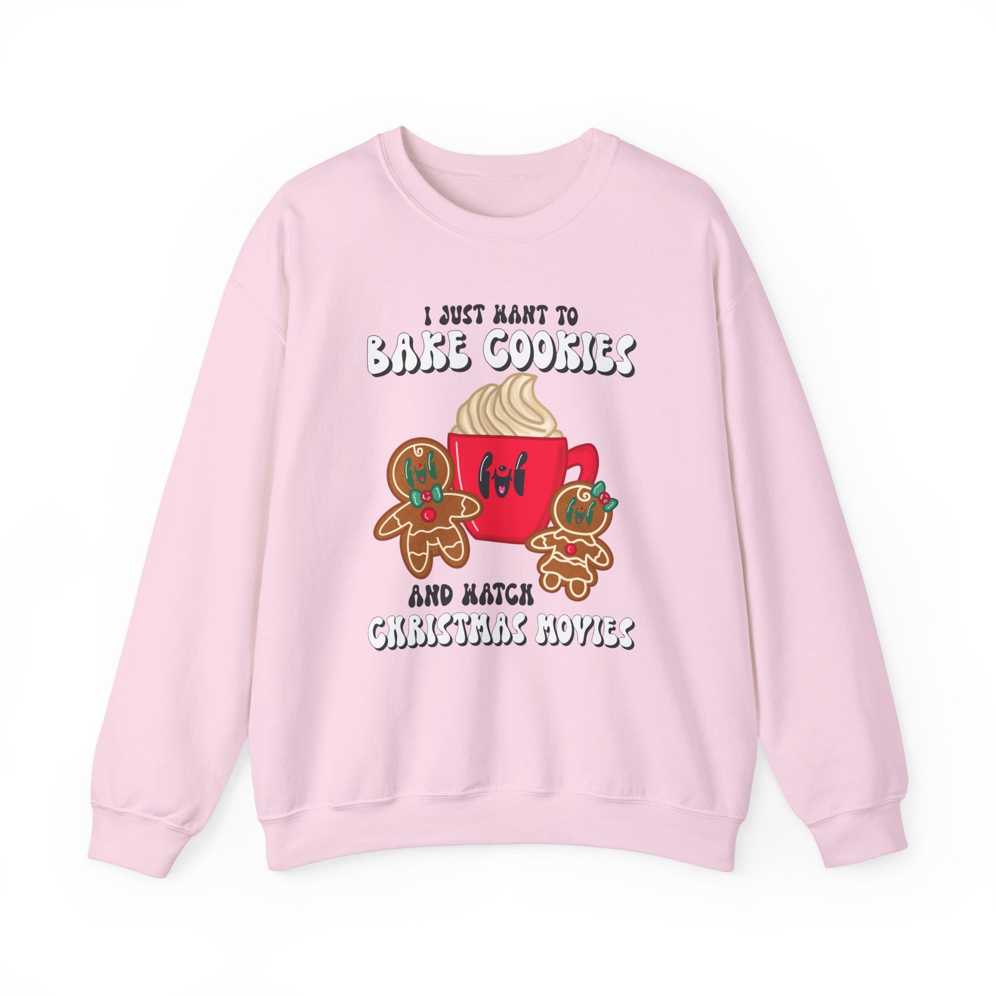 Cozy Christmas Movie Sweatshirt | Bake Cookies & Watch Movies Unisex Crewneck Sweatshirt | Gingerbead Pullover | Christmas Party Sweater
