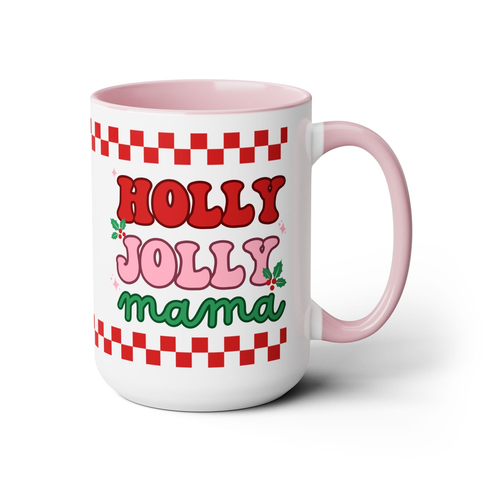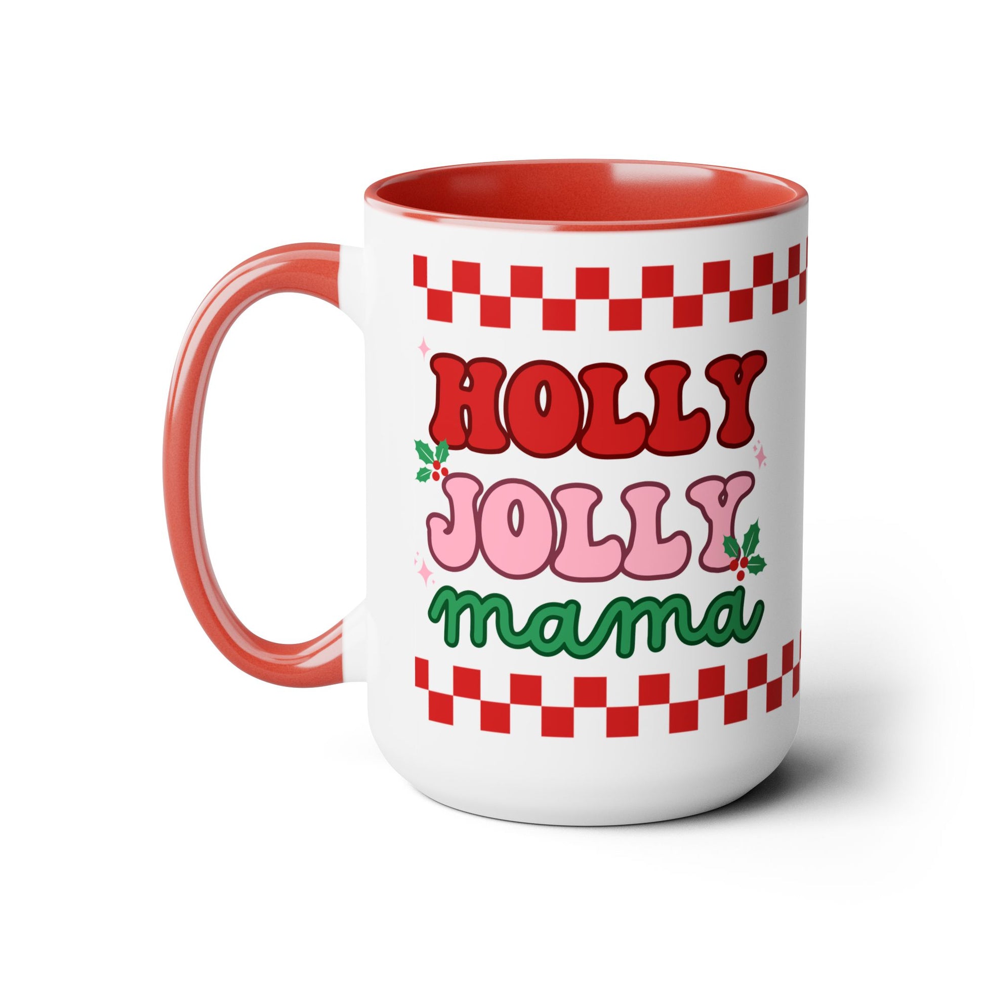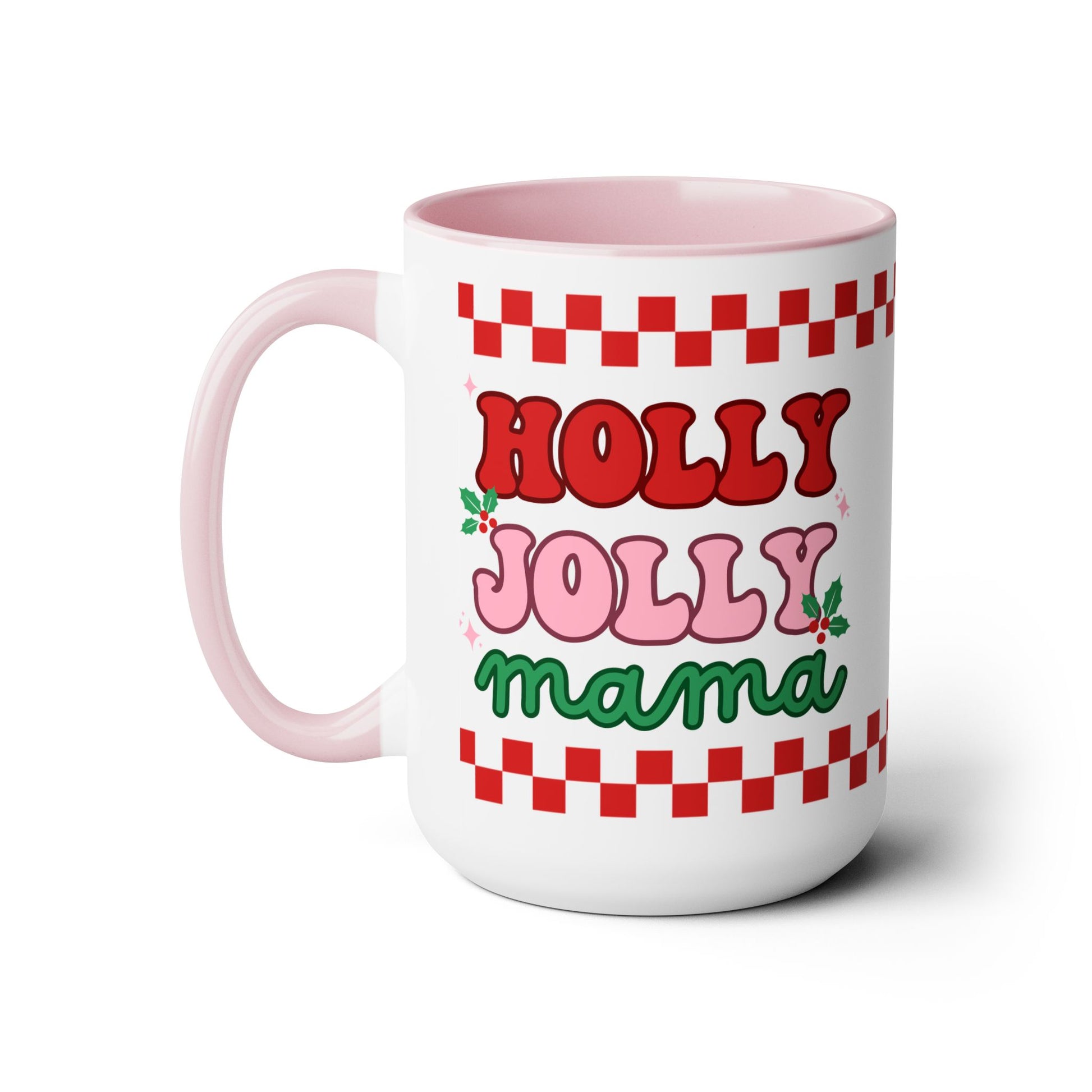 Holly Jolly Mama Christmas Coffee Mug | Retro Pink Christmas Mom Mug | Gifts for Mom | Mama Mug | Mom Drinkware | Motherhood Gifts