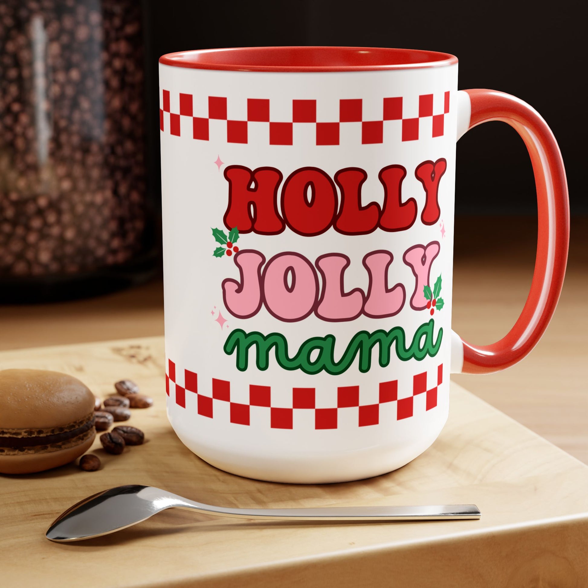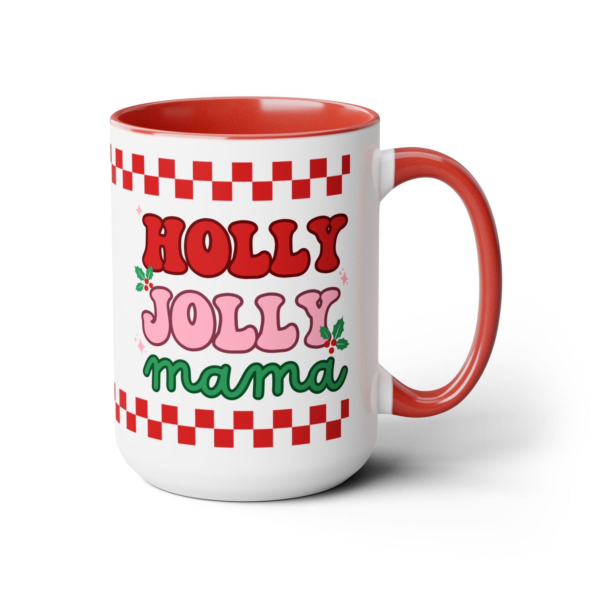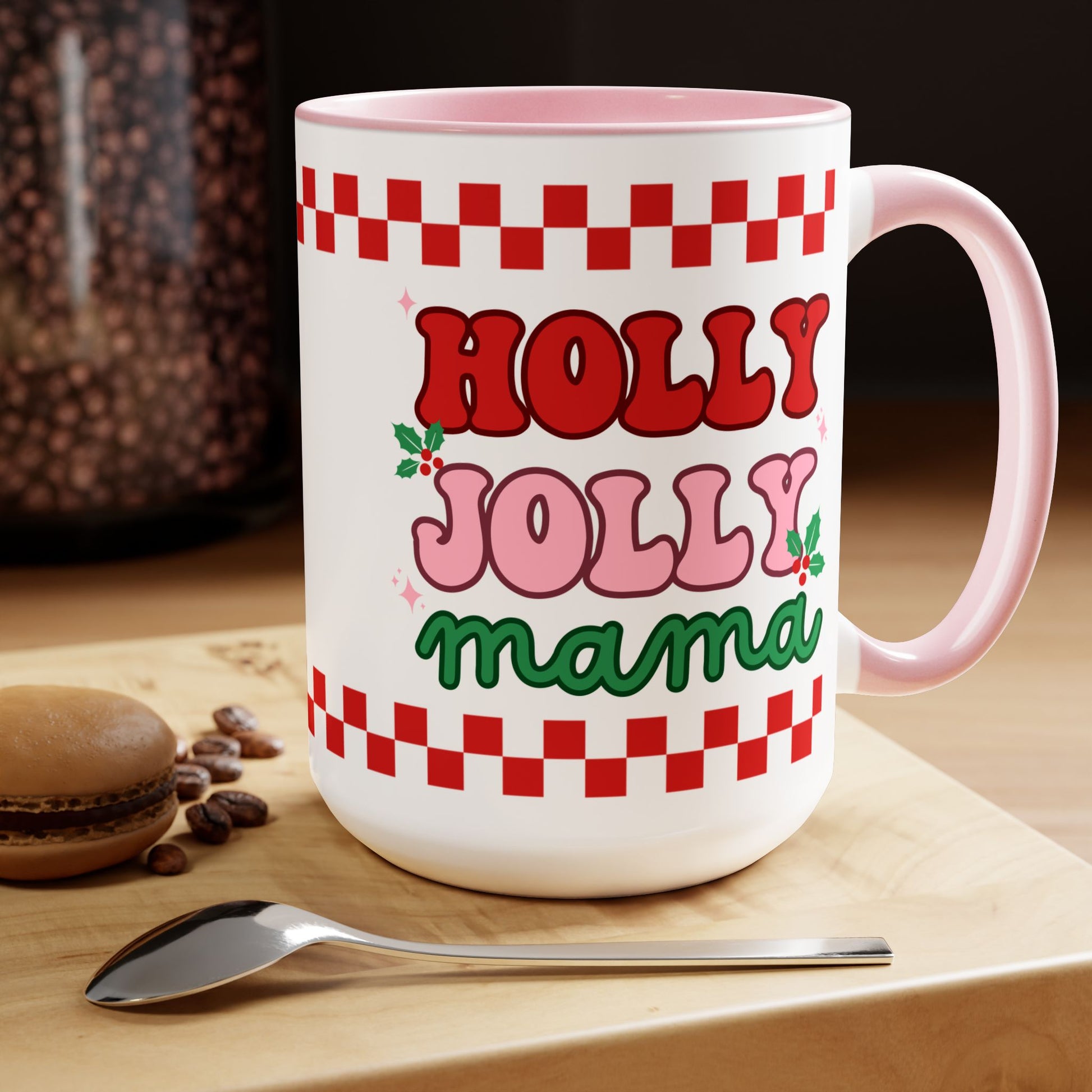 Holly Jolly Mama Christmas Coffee Mug | Retro Pink Christmas Mom Mug | Gifts for Mom | Mama Mug | Mom Drinkware | Motherhood Gifts