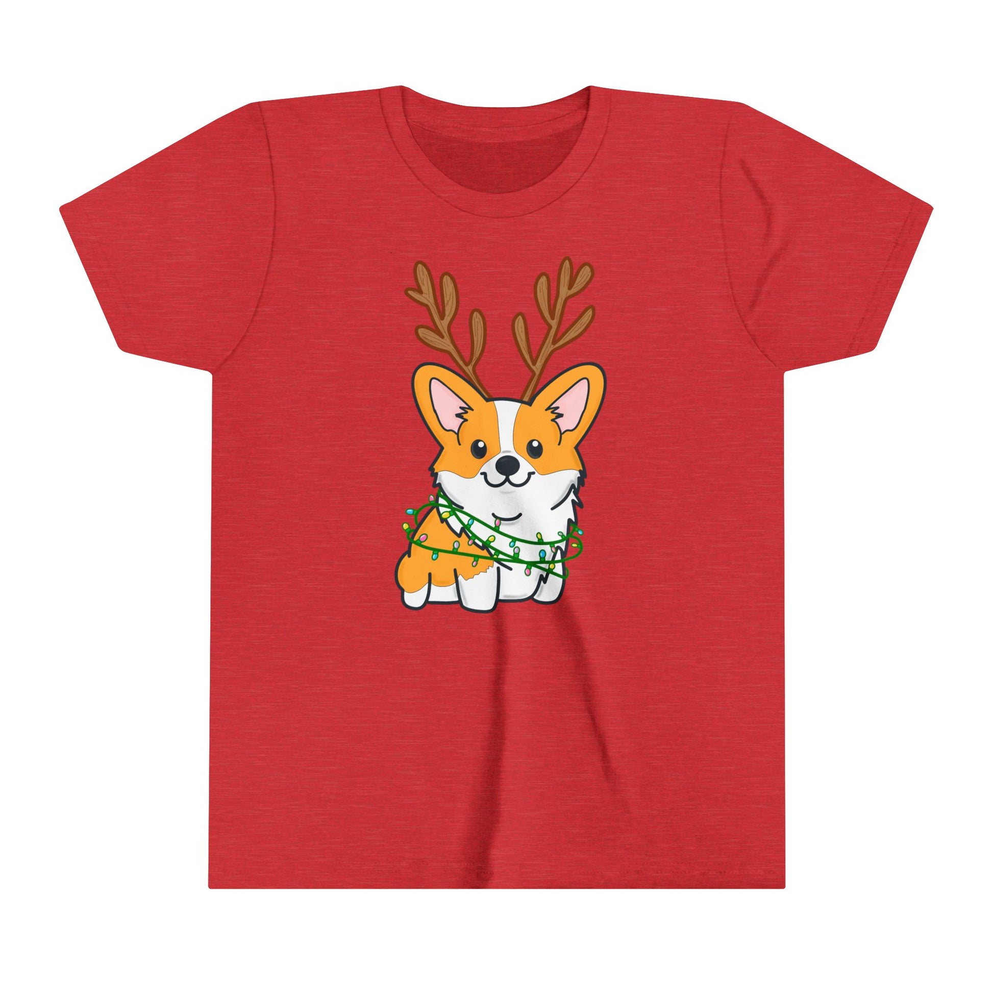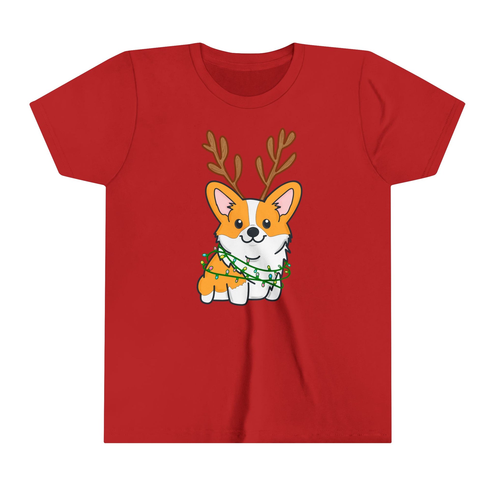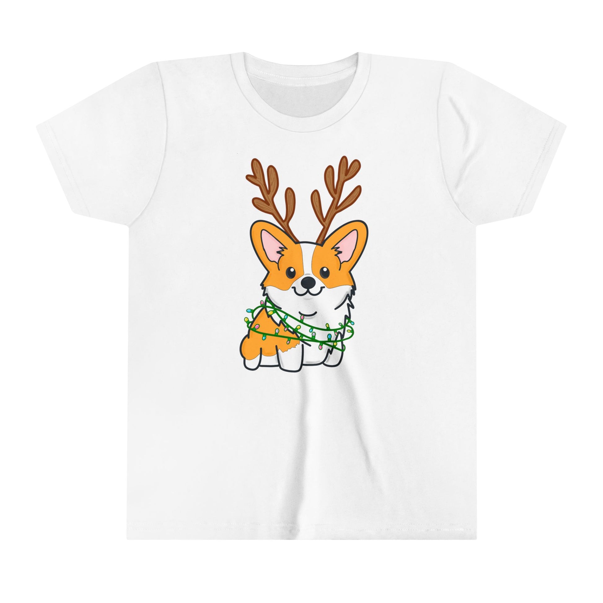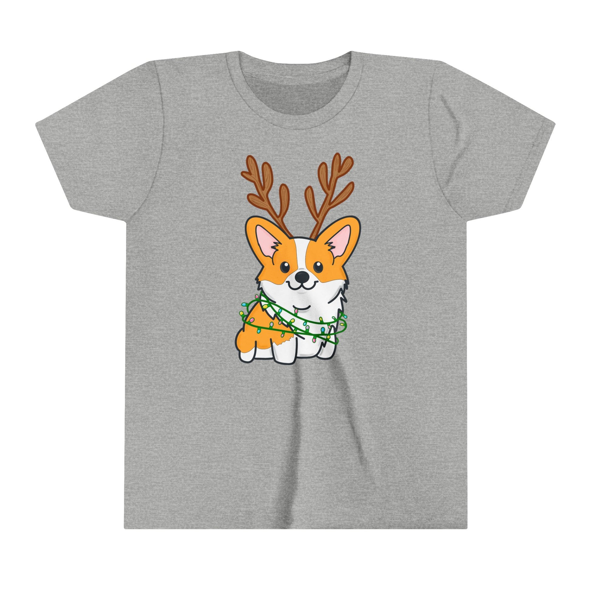 Kids Christmas Corgi Youth Short Sleeve Tee | Reindeer Holiday Kids Tee | Dog Xmas Tee