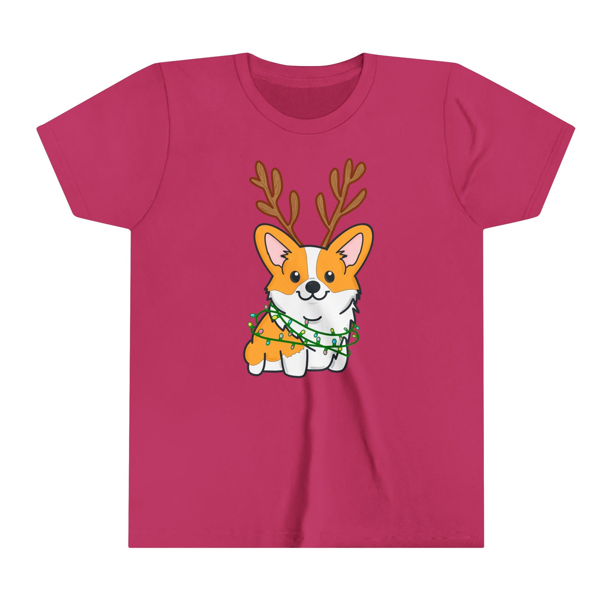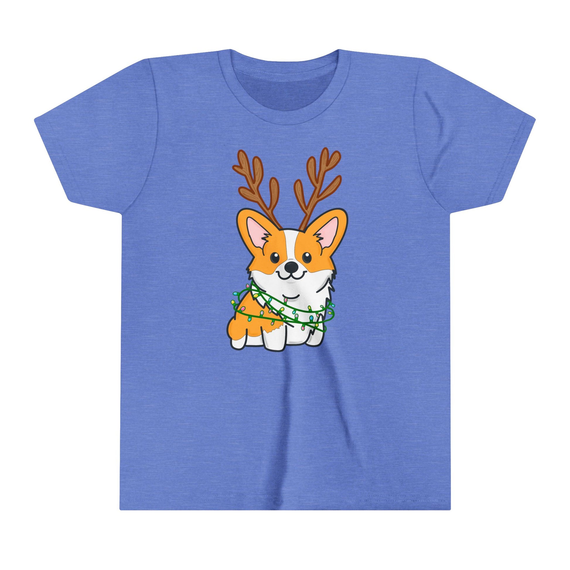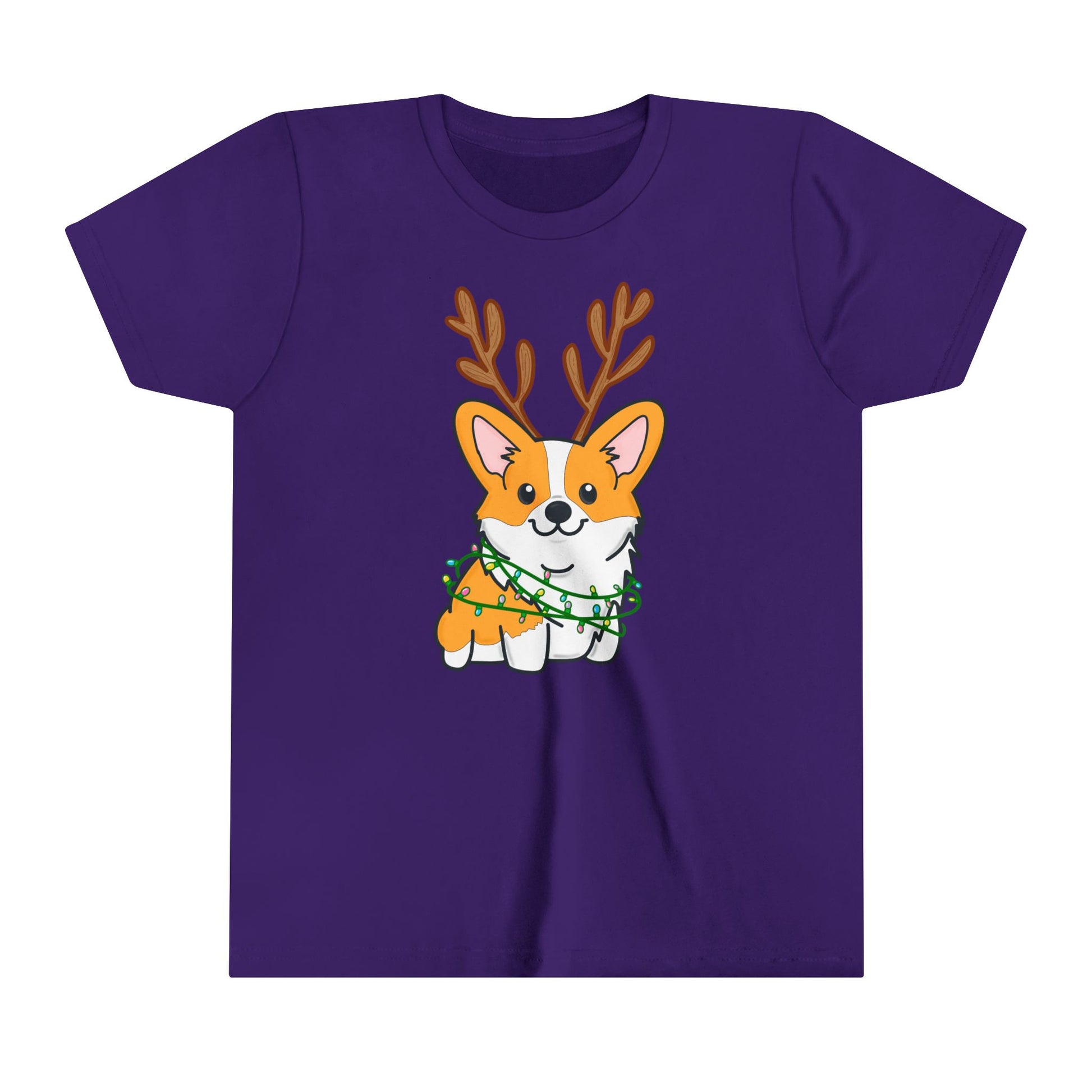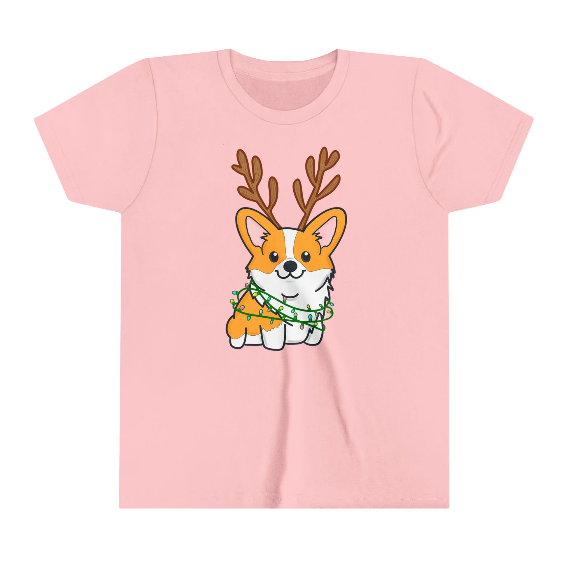 Kids Christmas Corgi Youth Short Sleeve Tee | Reindeer Holiday Kids Tee | Dog Xmas Tee
