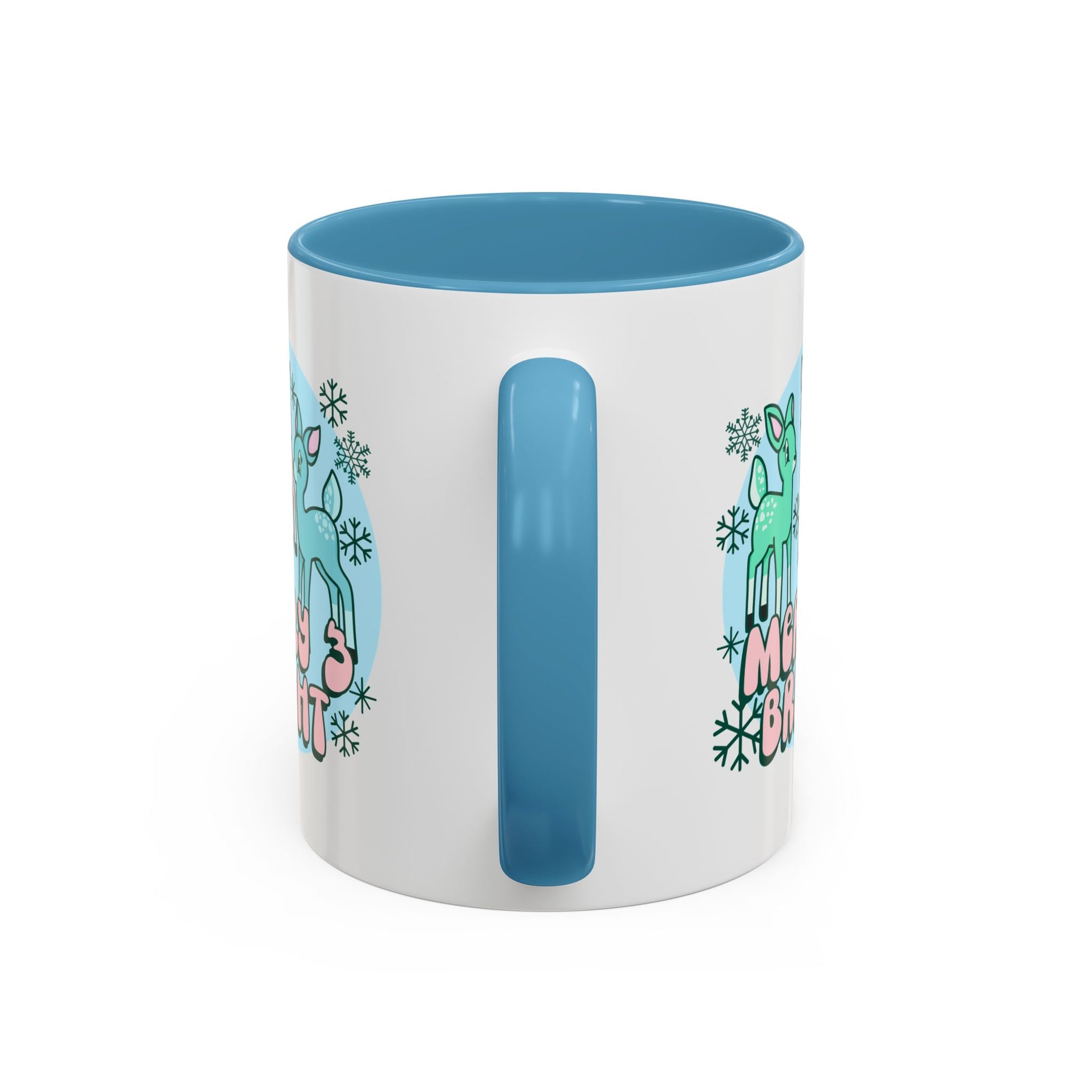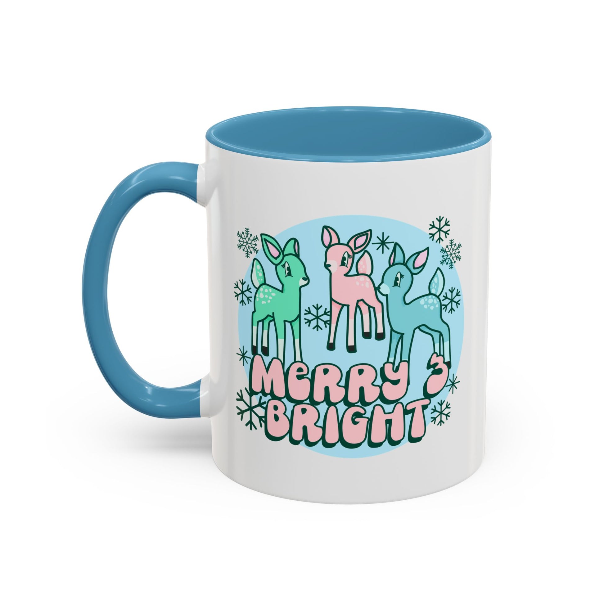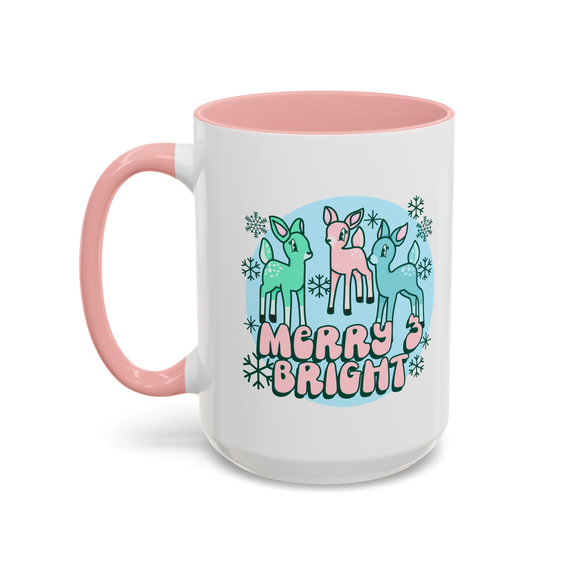 Merry and Bright Reindeer Pink Holiday Coffee Mug 11oz/15oz