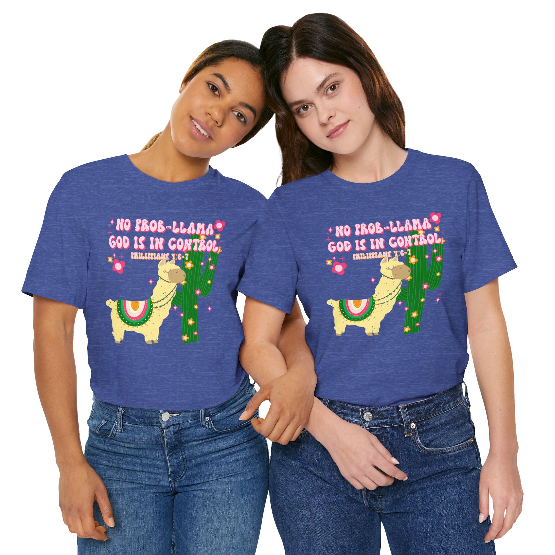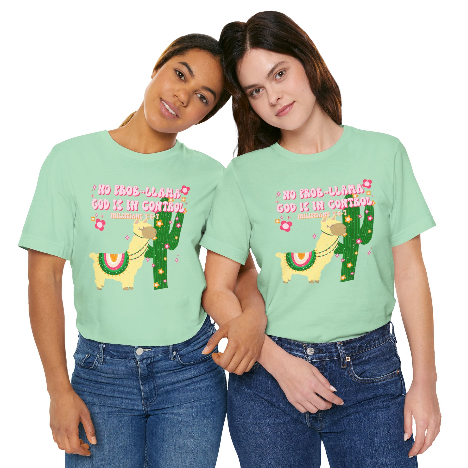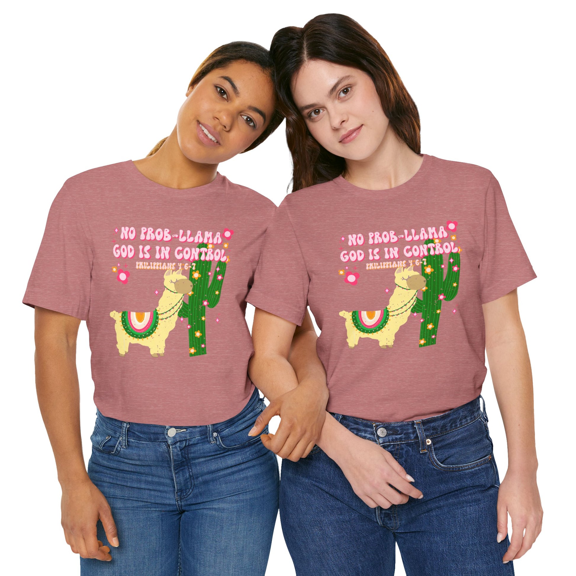 No Prob-Llama God is in Control Women's Tee | Christian Shirt | Groovy Style Church T-Shirt | Christian Gifts