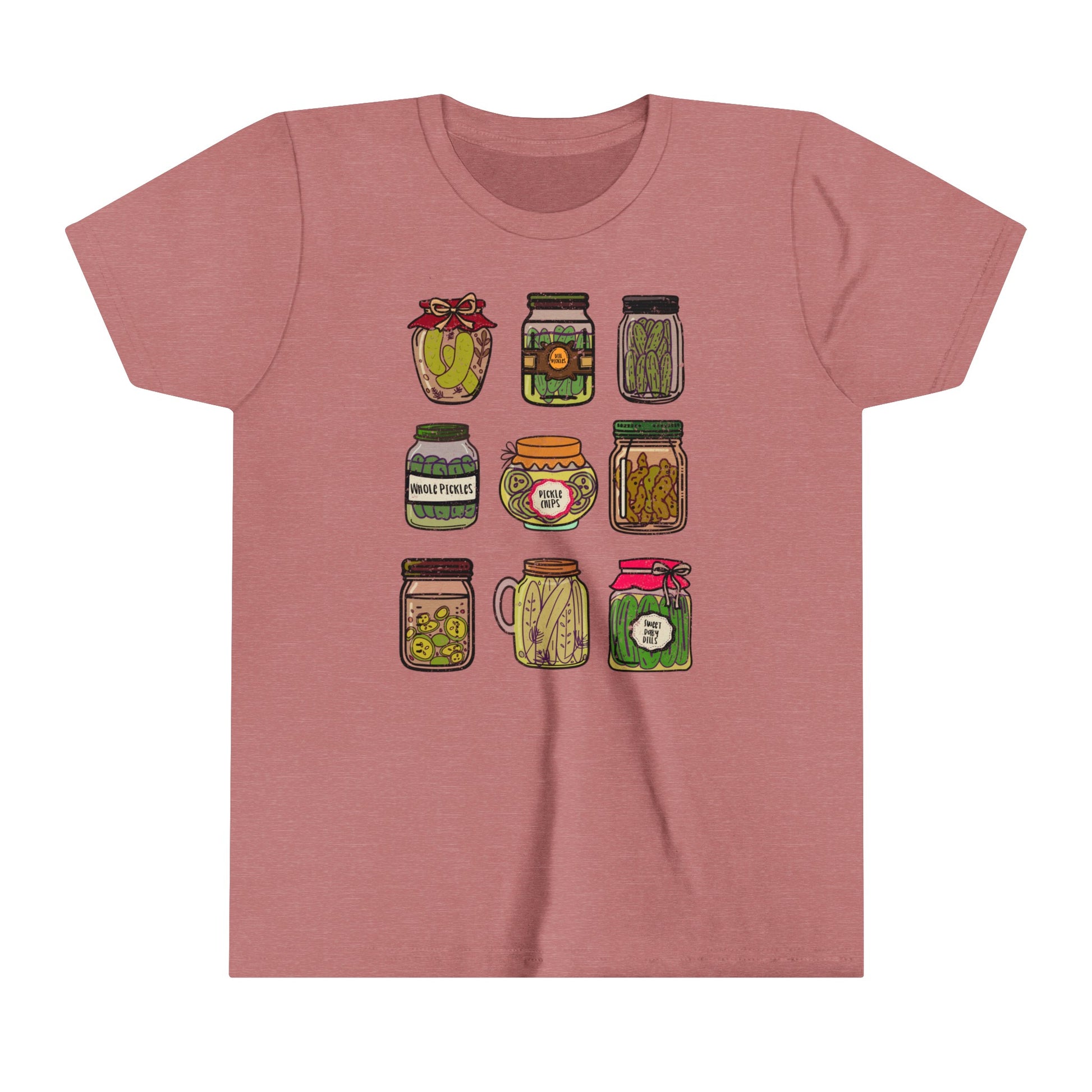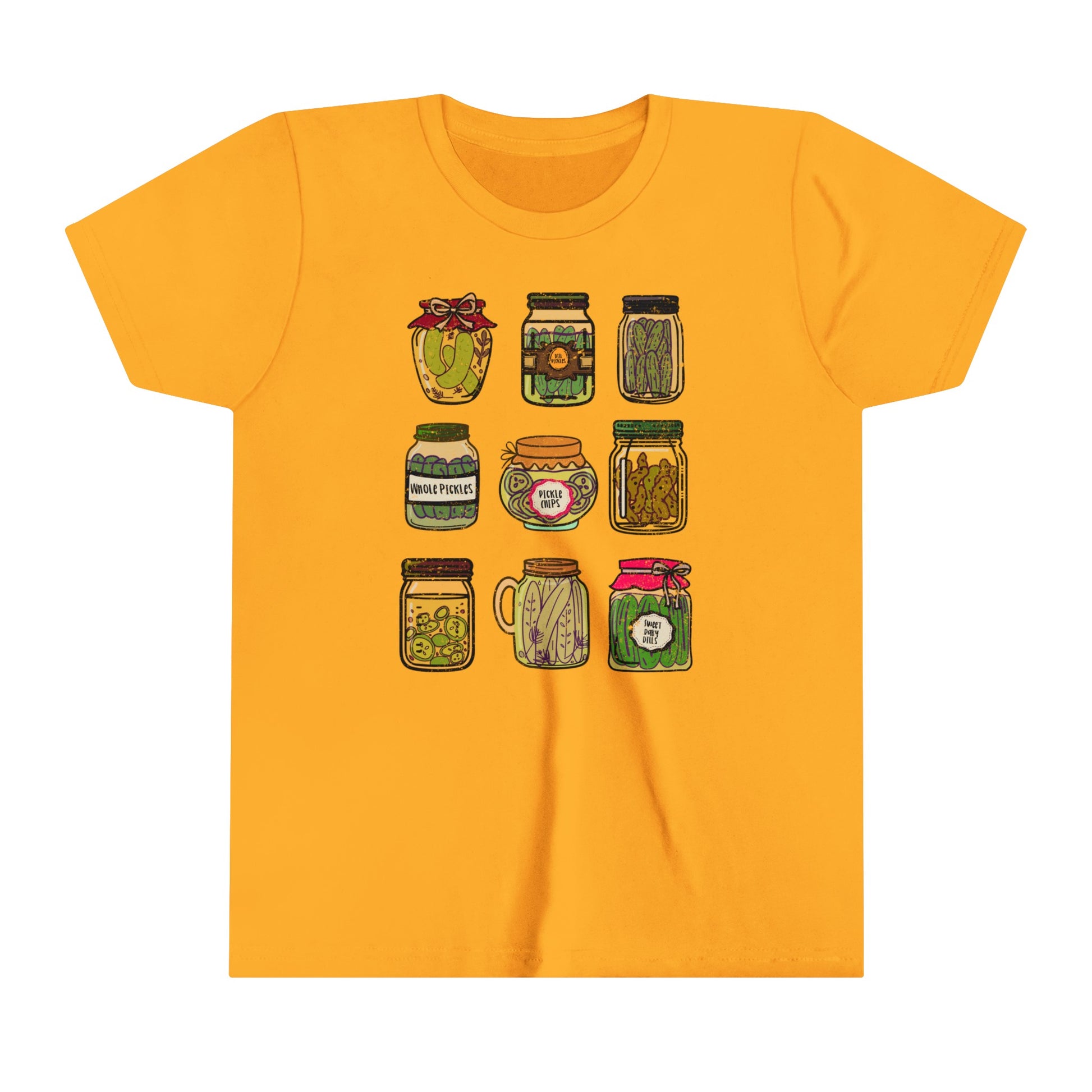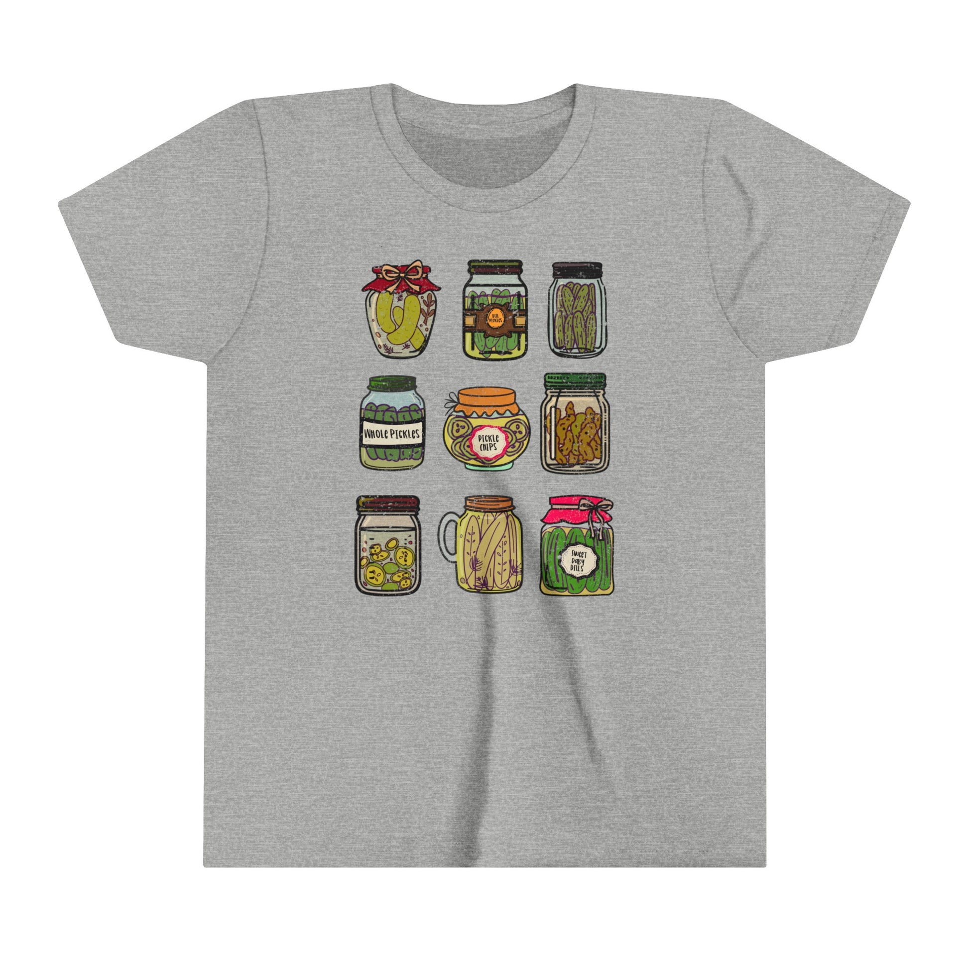 Pickle Lover's Graphic Kids Size Tee | Assorted Pickle Jar Design Youth Tee | Foodie Shirt for Pickle Enthusiasts | Pickle Gifts