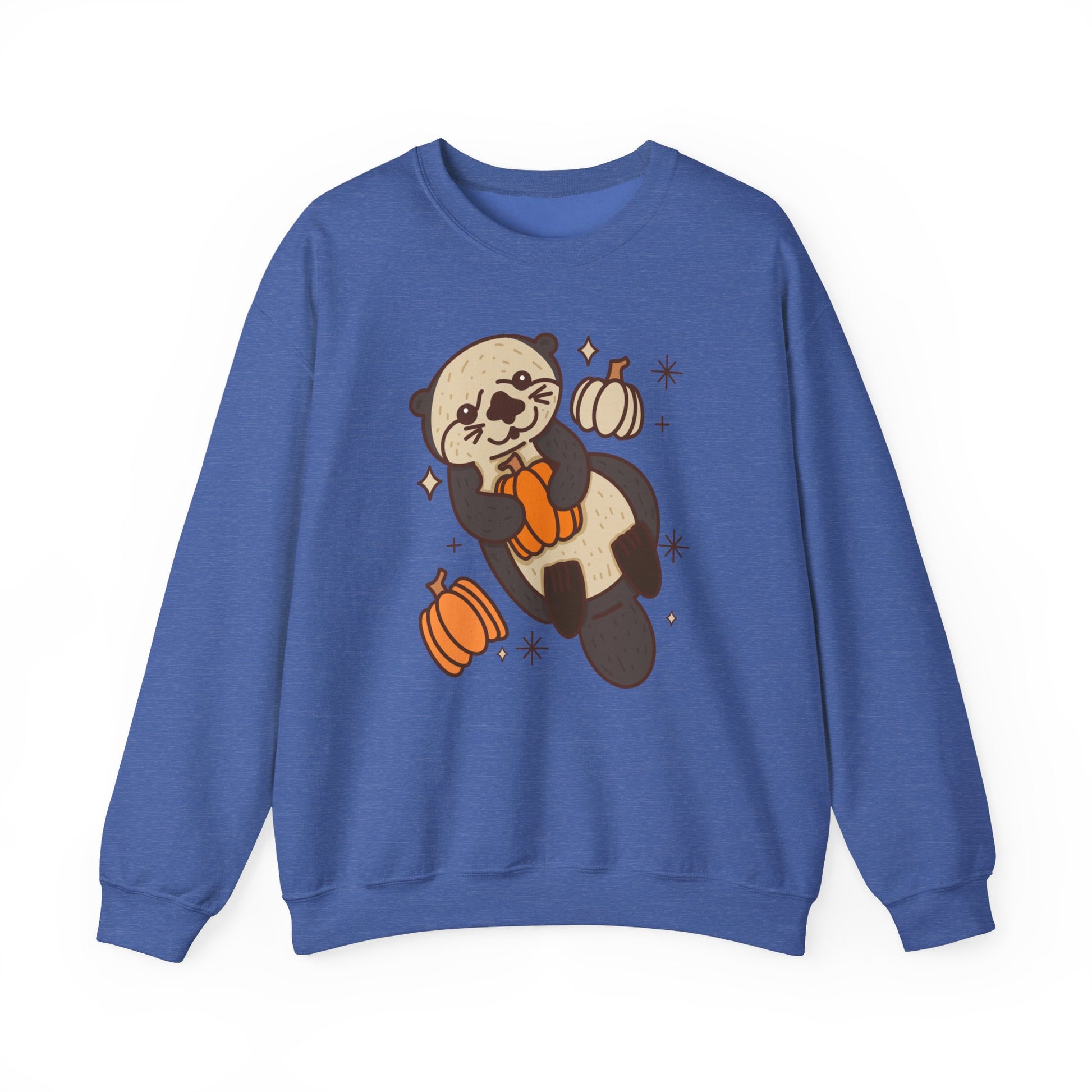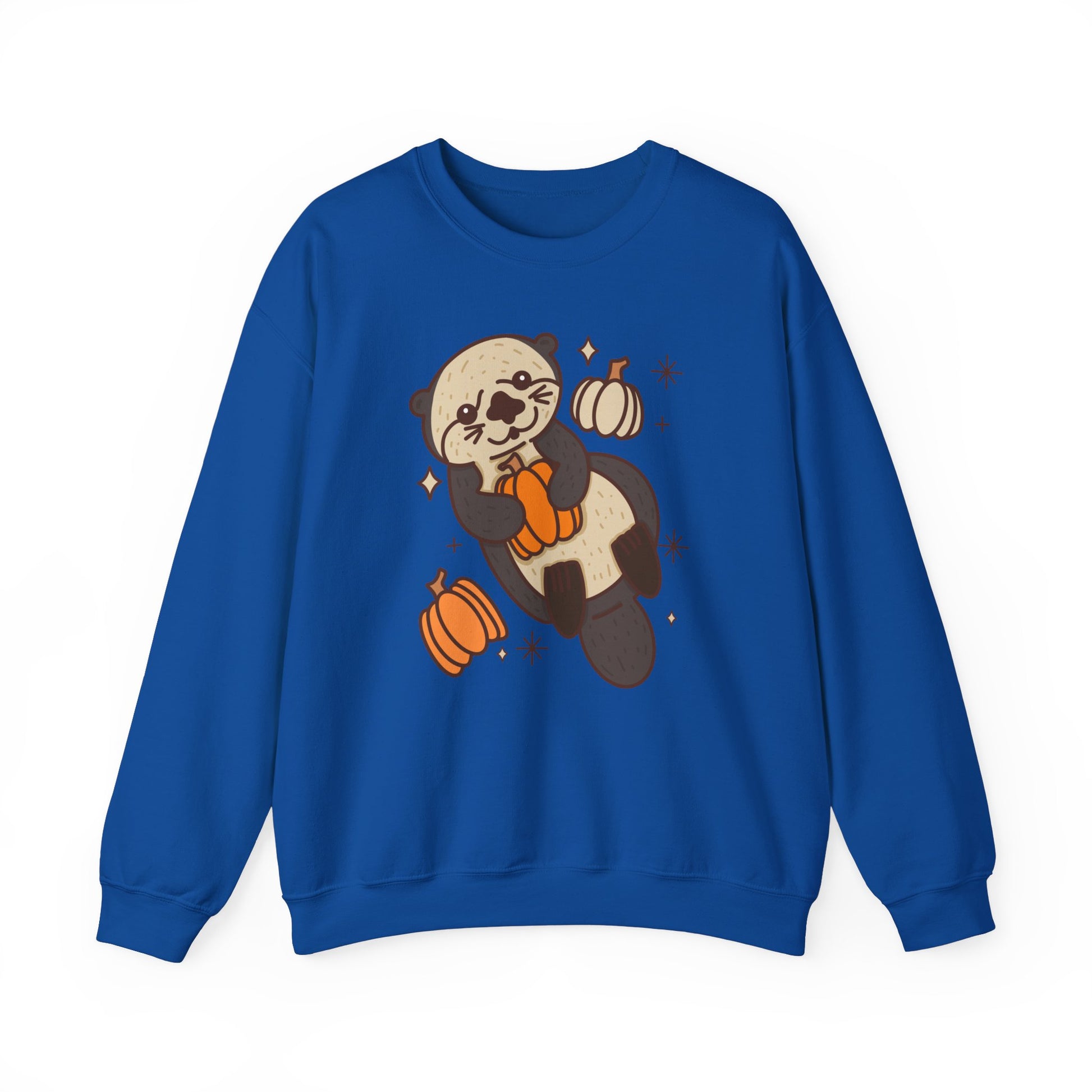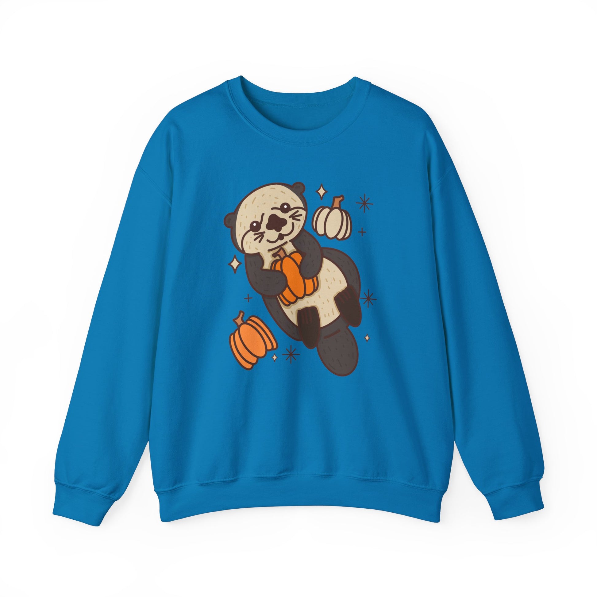 Sea Otter Pumpkin Spooky Season Pullover Sweatshirt | Pumpkin Crewneck Adult Unisex Fit Sweatshirt