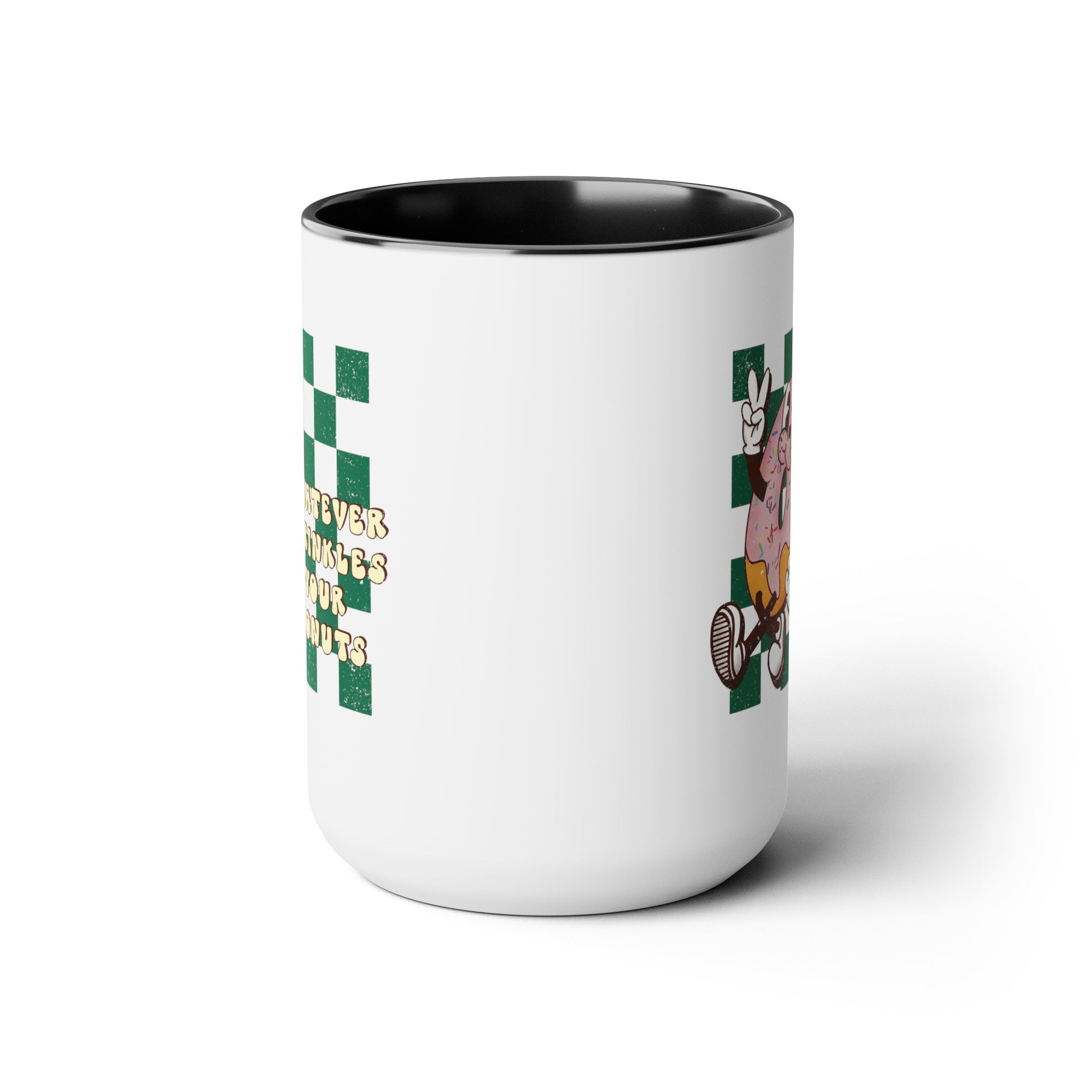 Savor your favorite brew with our charming "Whatever Sprinkles Your Donuts" Coffee Mug, a delightful ode to the joy of indulging in life's simple pleasures. Crafted from high-quality ceramic, this mug boasts a whimsical donut illustration that adds a touch of sweetness to your sipping experience. The playful phrase, "Whatever Sprinkles Your Donuts," invites a lighthearted vibe to your morning routine or afternoon coffee break. The generously sized mug, with a capacity of [mention capacity], ensures you have ample space for your preferred hot or cold beverage. Ideal for donut enthusiasts and coffee lovers alike, this mug makes a quirky and thoughtful gift. The sturdy ceramic construction ensures durability, while the vibrant design adds a pop of fun to your kitchen or office. Enhance your daily rituals with a dose of humor and a sprinkle of sweetness. Whether you're treating yourself or surprising a donut aficionado, our "Whatever Sprinkles Your Donuts" Coffee Mug is the perfect blend of charm and functionality. Elevate your coffee experience with a mug that sparks joy and laughter.